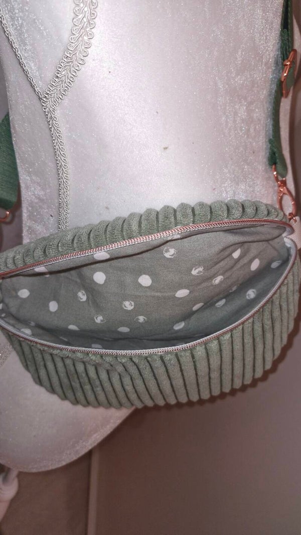(Alle Maße sind Ca Maße)Innen befindet sich ein kleines Steckfach.Die Karabiner und Reißverschluss Zipper gibt es wahlweise in Gold,Silber oder Rosegold. Ein Steckfach wird gegen einen Aufpreis von 3 € eingenäht. Alle Elemente sind farblich aufeinander abgestimmt, Sonderwünsche werden entgegengenommen. Wahlweise Breitcord, Feincord, Teddyplüsch und Kunstleder.Bei Sonderanfertigungen, wenn Dir der Zipper an Deiner gewählten Tasche nicht zusagt, oder Du andere Farbwünsche hast, bitte ich um eine kurze Mitteilung im Bereich Nachricht, per E-Mail oder WhatsApp, dann zeig ich Dir die Auswahlmöglichkeiten😊 ich nähe die Tasche in der Regel in der Größe Maxi falls du die mittlere oder kleine Tasche möchtest dies bitte ebenfalls im Nachrichtenfeld mitteilen